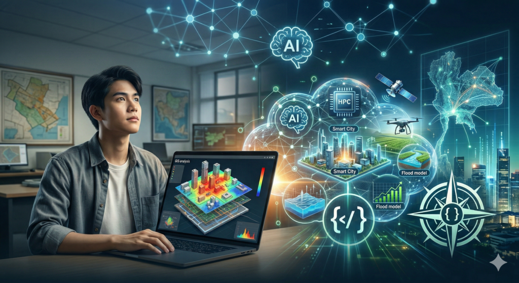 สวัสดีครับน้องๆ และเพื่อนร่วมชะตากรรมสาย GIS ทุกคน! ช่วงนี้ใครที่ทำงานสายภูมิสารสนเทศ หรือกำลังเรียนอยู่ คงจะเริ่มรู้สึกเหมือนผมใช่ไหมครับว่า “โลกมันหมุนไวมาก” สมัยก่อนตอนผมเริ่มจับ GIS ใหม่ๆ แค่เราเปิดโปรแกรม ArcGIS หรือ QGIS ขึ้นมา ลากเส้นถนน นำเข้าพิกัดพอยต์ ระบายสีขอบเขตพื้นที่ให้สวยๆ แล้วส่งออกเป็นแผนที่…...