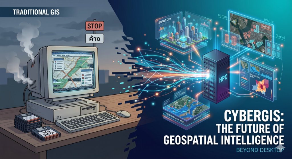 เมื่อวันก่อน พี่มีโอกาสได้นั่งคุยกับน้องๆ ปี 4 ในงานปัจฉิม ระหว่างที่คุยกันเรื่องหลักสูตรและประสบการณ์การเรียนของน้องๆ พี่เลยลองโปรยคำว่า “CyberGIS” ออกไปกลางวง… ภาพที่พี่เห็นคือแววตาที่เต็มไปด้วยเครื่องหมายคำถาม ก่อนที่น้องคนหนึ่งจะโพล่งถามขึ้นมาตรงๆ ว่า: “อาจารย์ครับ… แล้วไอ้เจ้า CyberGIS นี่มันคืออะไรเหรอครับ?” คำถามนี้น่าสนใจมากครับ เพราะมันสะท้อนว่าหลายคนยังมองภาพ GIS เป็นเพียง...
